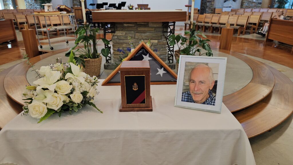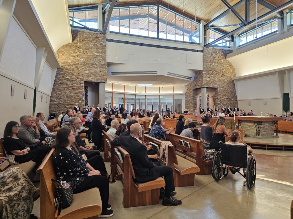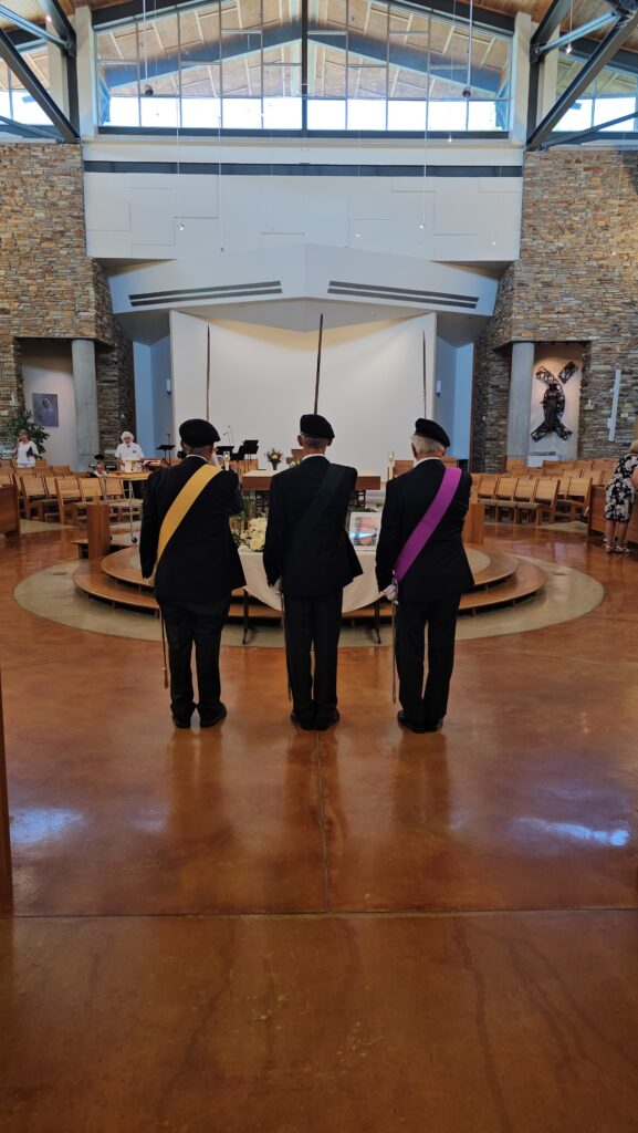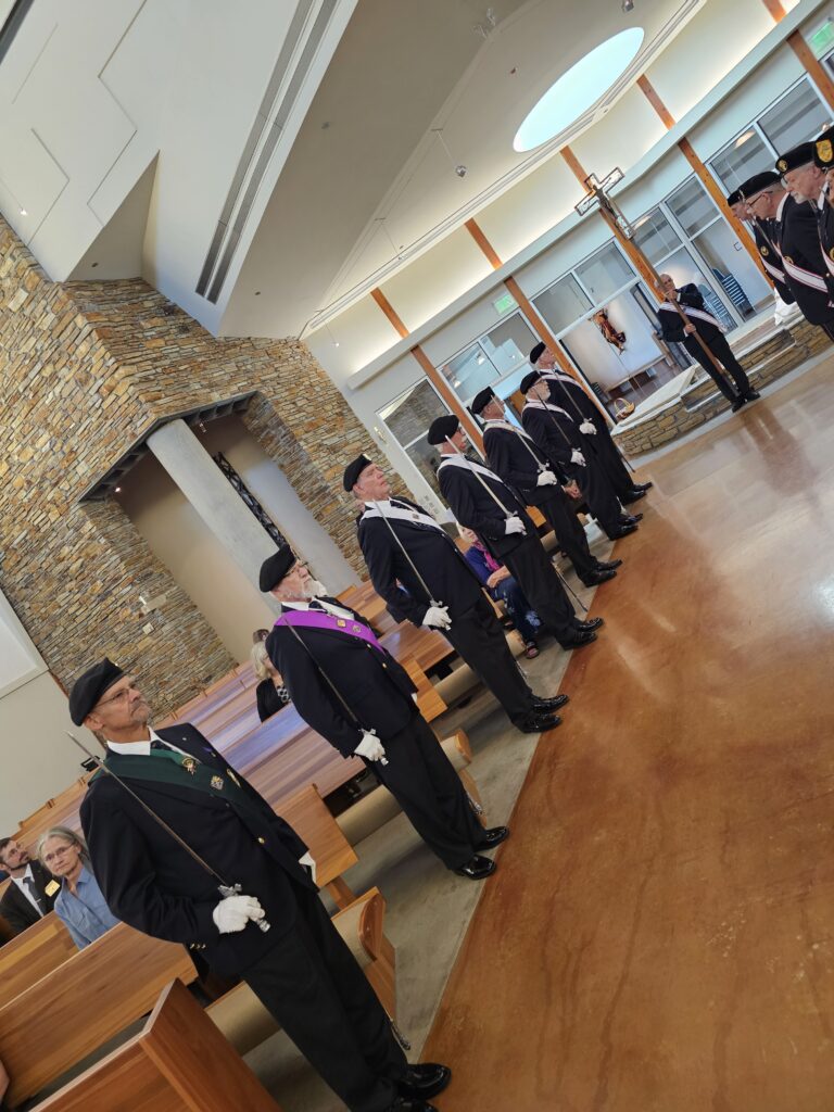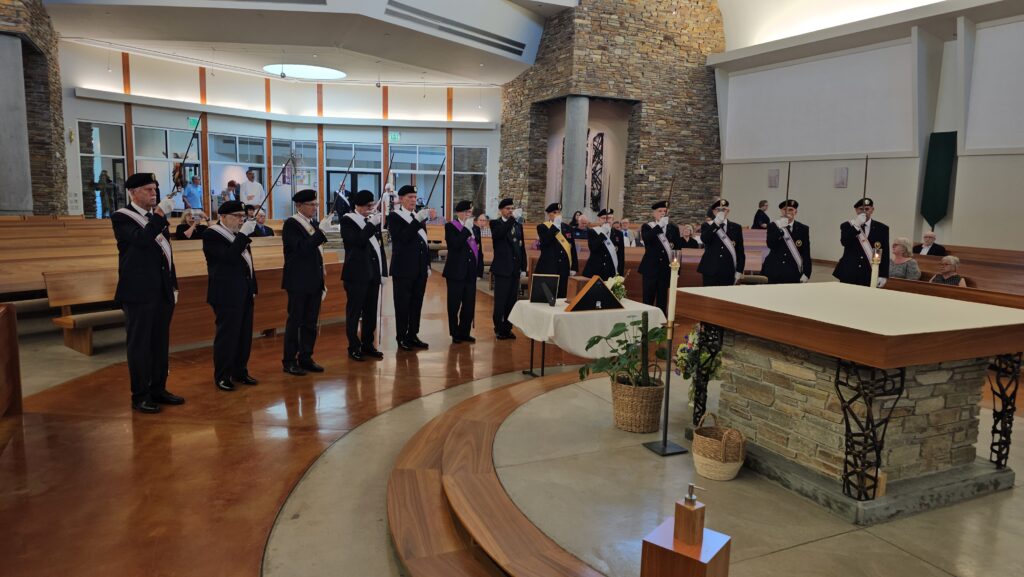 On July 31, 2024 family and friends gathered at Risen Christ Church in Boise to celebrate and remember the life of Charles “Chuck” Philip Portoghesi. 17 members of the Knights of Columbus from the Treasure Valley Honor Guard were in attendance to pay our respects to a brother Sir Knight, past Grand Knight and past Faithful Navigator. The United States Navy also provided a detail for military honors, which included the presentation of the US flag to Chuck’s wife, while family and friends looked on. Rest in peace with Our Lord, brother Chuck!