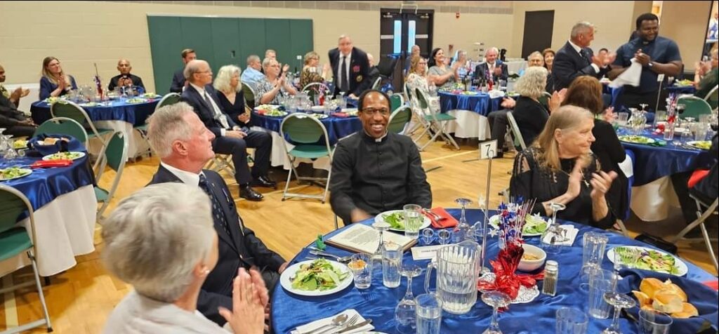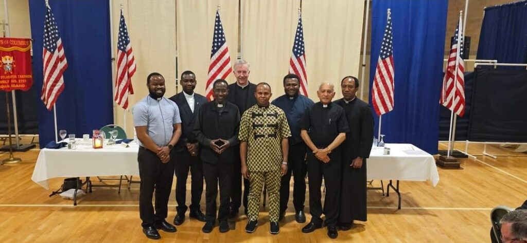 Bishop Peter and the Knights honor our local Nigerian Knight priests. Awards for 4th degree members were also given for service during the year.